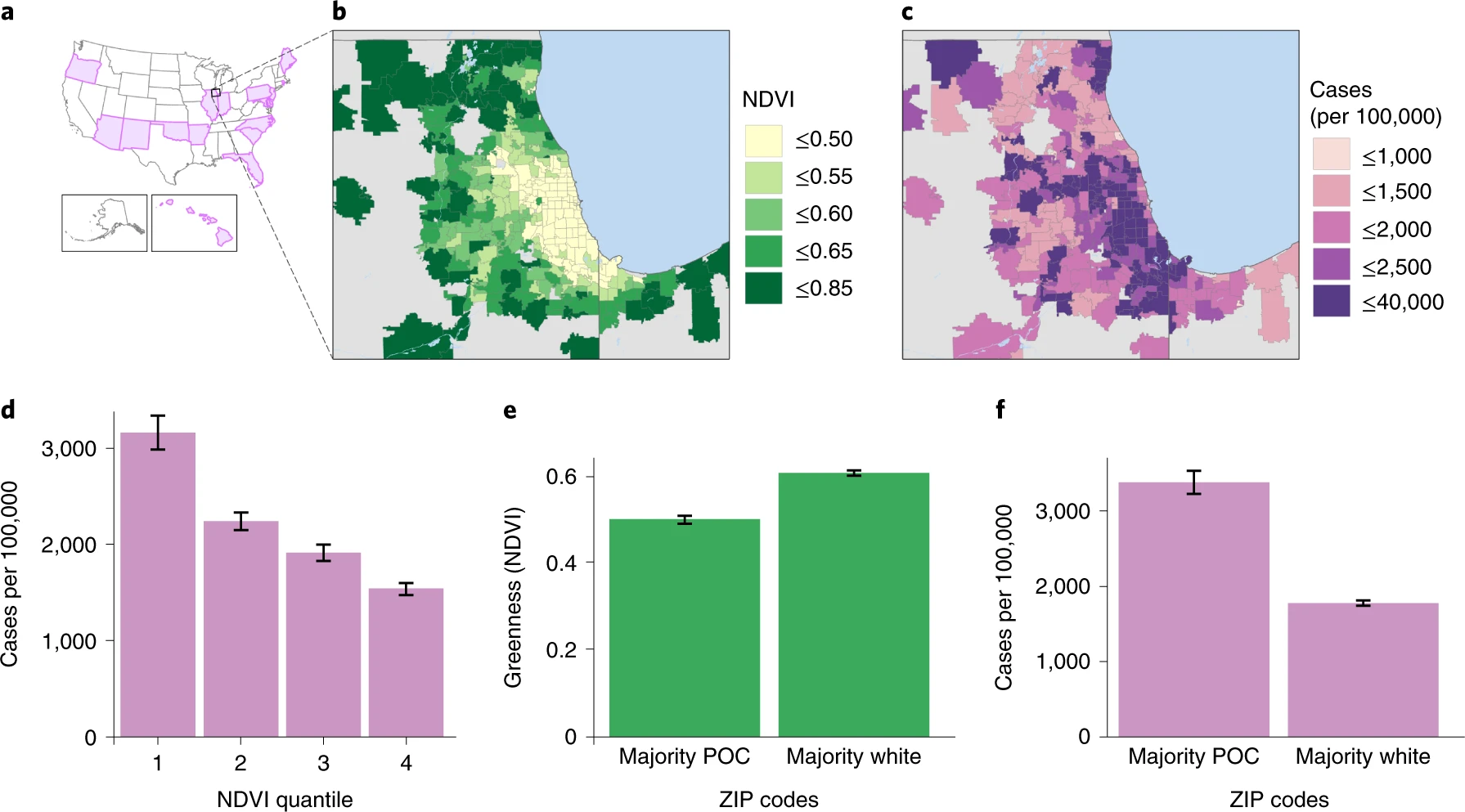 How are access to ‘greenness’ / nature related to COVID-19 infection rates and overall equity? — Benjamin, M., Stoneburner, L. et al. Nature inequity and higher COVID-19 case rates in less-green neighbourhoods in the United States. Nat Sustain 4, 1092–1098 (2021). https://doi.org/10.1038/s41893-021-00781-9